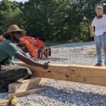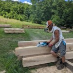 June was monstrously hot, dry, and the July Timber Frame Workshop loomed overhead as we worked to prepare as much material as possible for the new pavilion site. So very typical that the busiest month was by far the most uncomfortable — many days were over 95 degrees, with nary a drop of rain in sight. In that time, we built the entire foundation, got the timbers delivered, framed the floor system, put up a brandy new 20×40 event tent, and much much more. It was a 4 week adrenaline rush for me, basically. If I close my eyes, I can still feel the scorching heat on my back as Nick and I dug and cleaned 40+ holes in rock hard soil for the pier foundation.